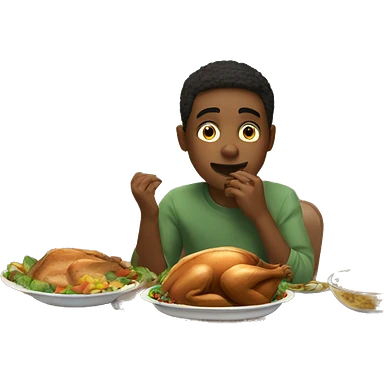 Black male with a taper fade warning a white shirt and red sweatpants eating thanksgiving food emoji