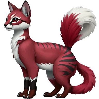 Black red burgundy grey white tribal-marked pastel white glorious divine exotic cute cool beautiful shiny beautiful fantasy-caracal-civet-genet-sergal-vernid-Gryphon-Cacomistle-Trico-oncilla-animal-Fakémon-hybrid-fursona (full body)emoji