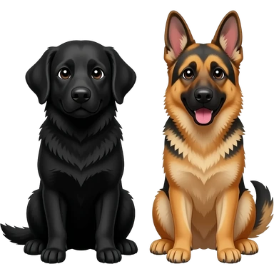 black golden retriever with a white chest next to German Shepard emoji