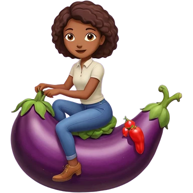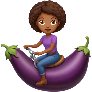 black girl riding eggpant emoji