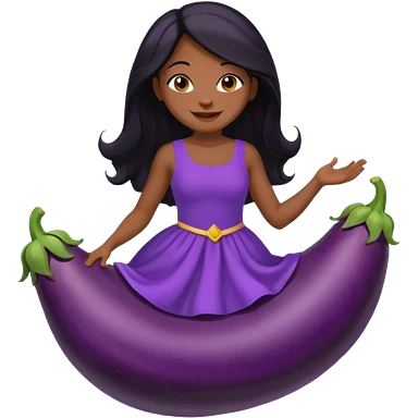black girl with long black hair riding eggpant emoji