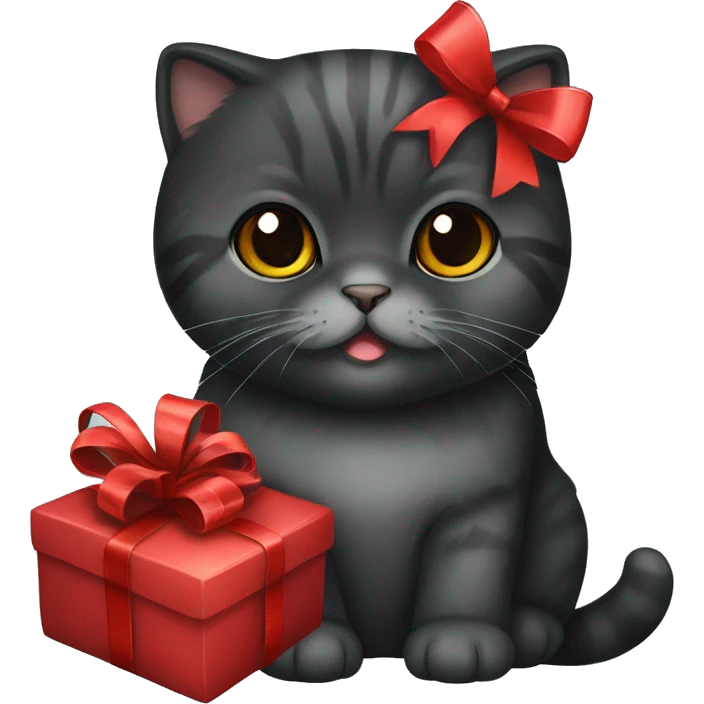 Black scottish fold cat with red gift bow emoji | AI Emoji Generator