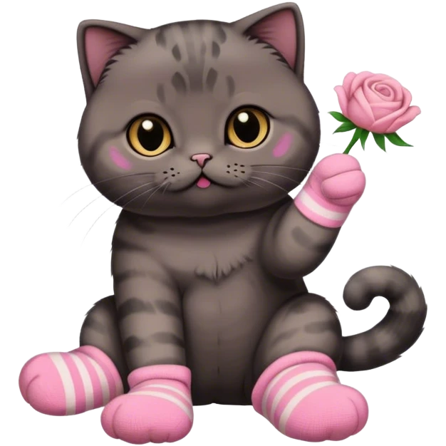 Black Scottish fold with dust rose socks at its paws emoji | AI Emoji Generator