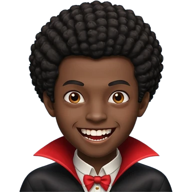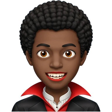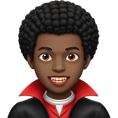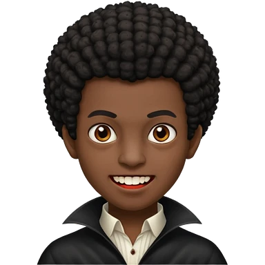 Black darkskin seventeen man with little afro haircut and vampire teeth emoji