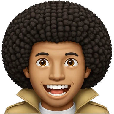 Black seventeen man with a afro haircut and grillz in his teeths emoji | AI Emoji Generator