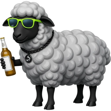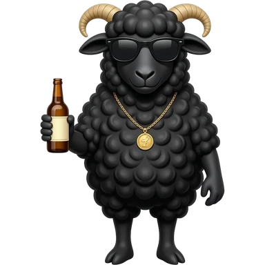 Black Sheep wearing sunglasses, necklace and holding a bottle emoji