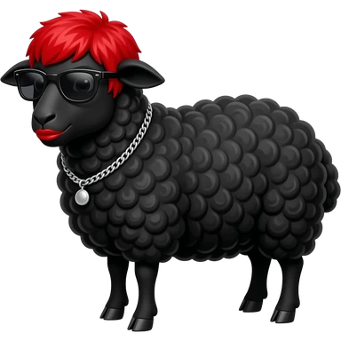Black Sheep with red hair wearing sunglasses, necklace and lipstick emoji
