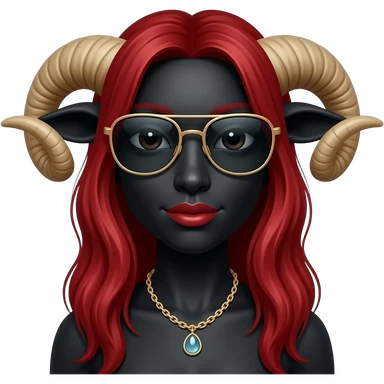 Black Sheep with long auburn hair wearing sunglasses, necklace and lipstick emoji