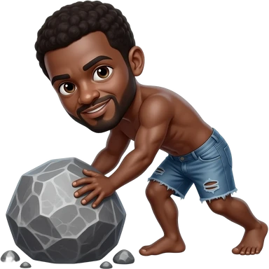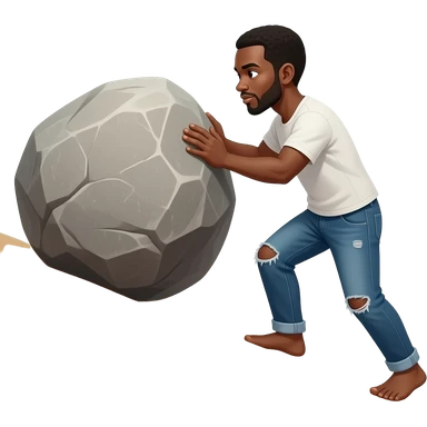 Sisyphus at the base of a hill starting to push a boulder, emoji style emoji