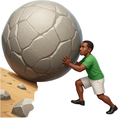 Sisyphus pushing a large boulder up a hill, emoji style emoji