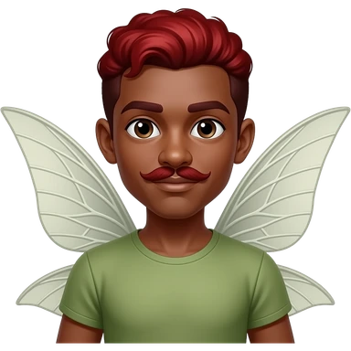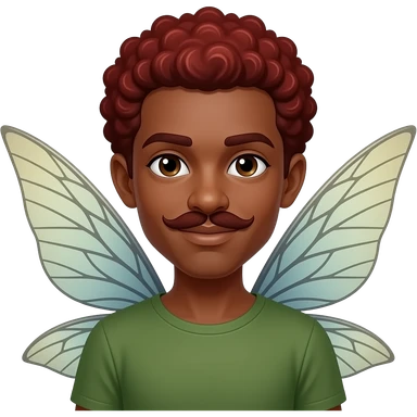 black skinned man fairy with curly very red hair and mustache and big wings emoji | AI Emoji Generator