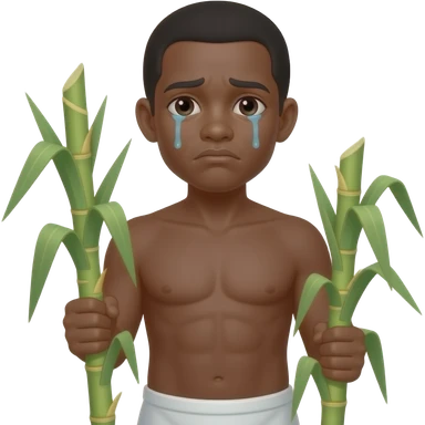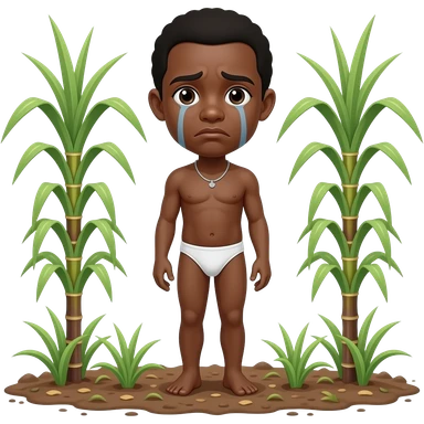 black slave standing wearing only a white bottom cultivating sugar cane emoji | AI Emoji Generator