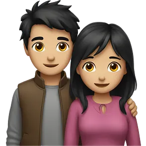 black smiling boy with dreadlocks hugging a white girl with brunette hair and big eyes emoji | AI Emoji Generator
