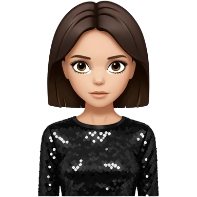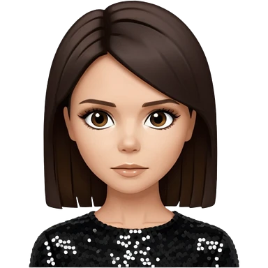 Victoria Beckham from Spice Girls with medium dark brown hair, black sequin outfit emoji