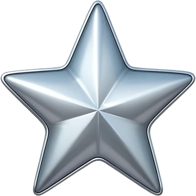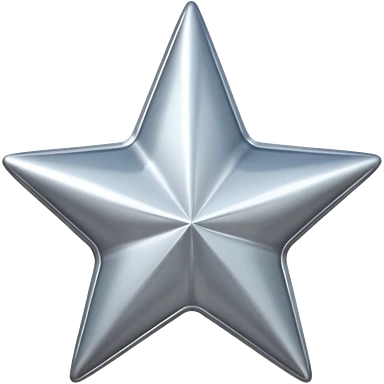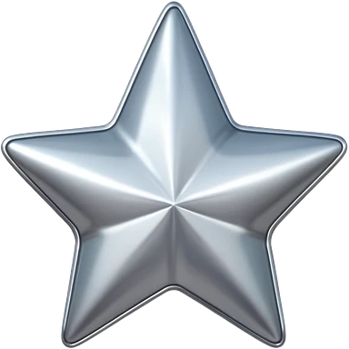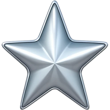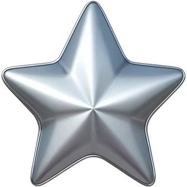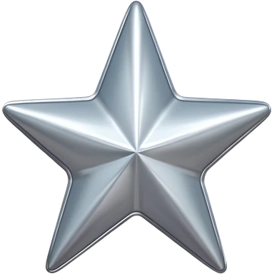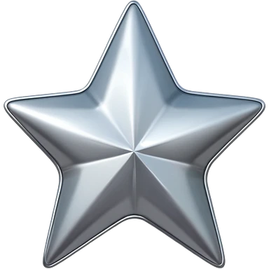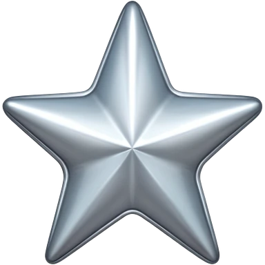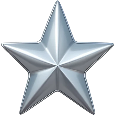 Chrome silver star emoji, iOS emoji style, glossy metallic surface, soft reflections, minimalistic, centered, clean white background, high detail, smooth gradients emoji