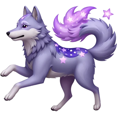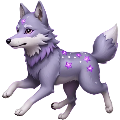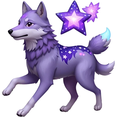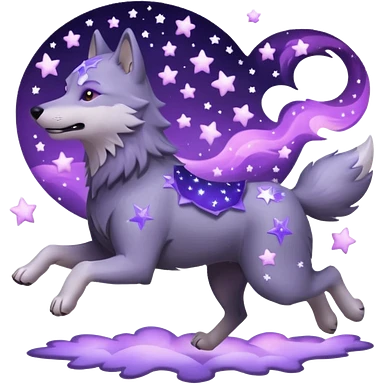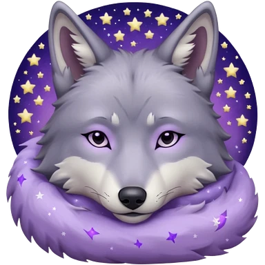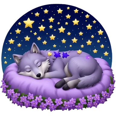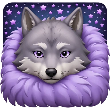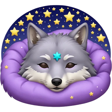 A wolf of winterfell from game of thrones sleeping under lilac stars emoji