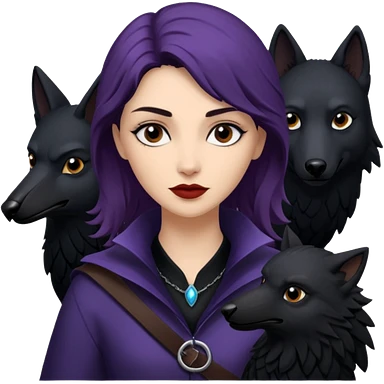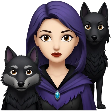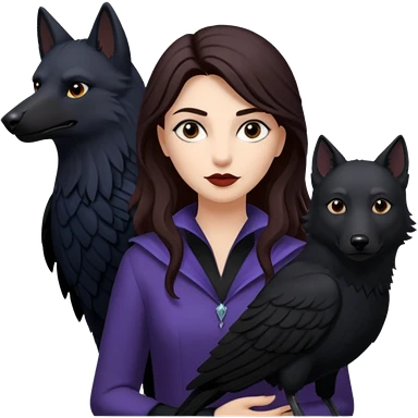 Alysanne Blackwood from Game of Thrones. She is known as black aly and is the Wife of Cregan Stark. I have her looking like Hande Erçel. Show her with a raven and a wolf emoji