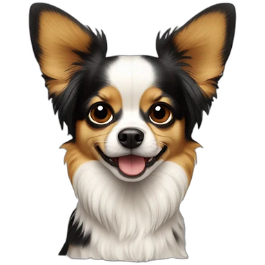 Black tan papillon long hair Chihuahua dog with some white markings chest and a snout emoji | AI Emoji Generator
