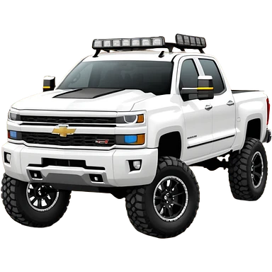 Chevrolet 2500 2022 crew cab. A ferocious truck featuring a vivid white base and black off road front bumper and chrome off road wheels. Emphasize sharp, high-contrast black streaks across the body, creating a look of aggressive, explosive energy. emoji