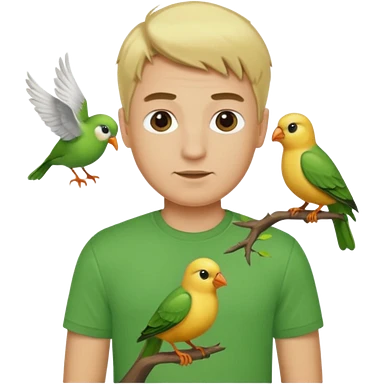 green tshirt blonde man with bird emoji