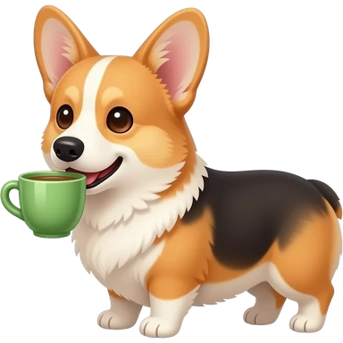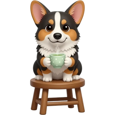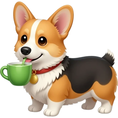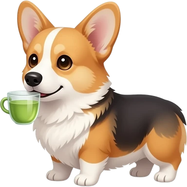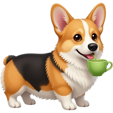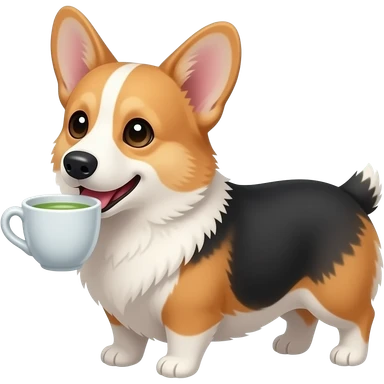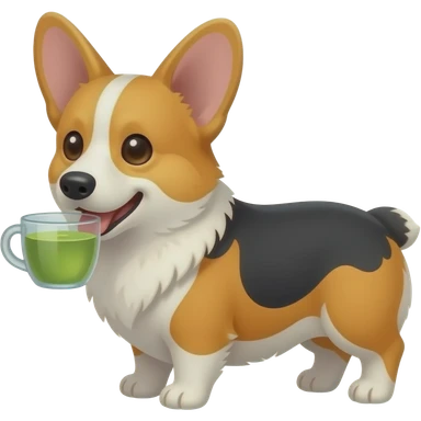 black tricolor corgi drinking green tea emoji | AI Emoji Generator