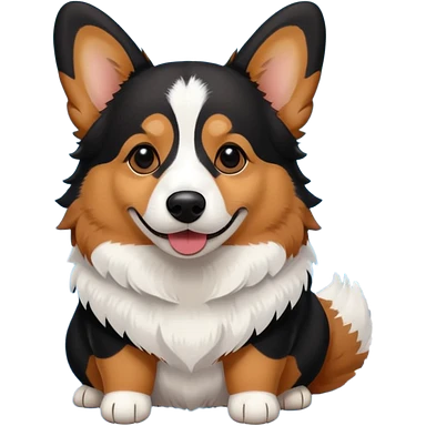 black tricolor corgi with no tail and a snowflake on it's nose emoji | AI Emoji Generator