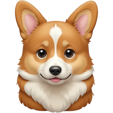 a tricolor corgi. lots of black on the head , around the eyes, a white spot on the forehead, sticking out the tongue emoji