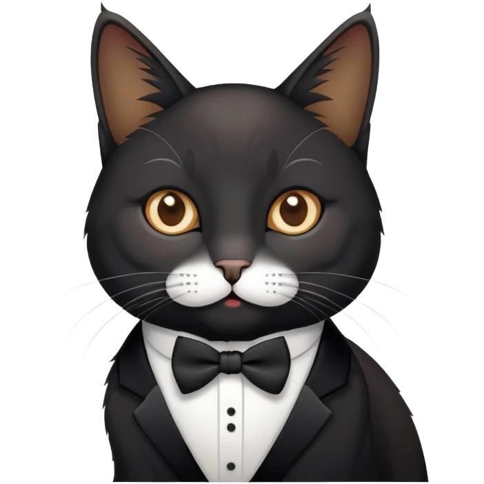 Black tux cat with a multi colored grey and brownish cat emoji | AI Emoji Generator