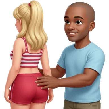 Black man with baold head squeezing blonde lady butt emoji