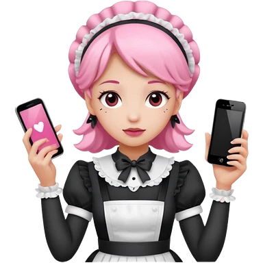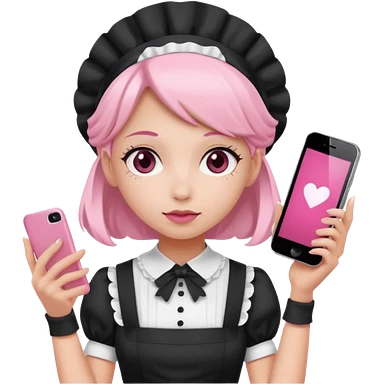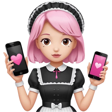 guy wearing pink maid clothes with long black spiky hair and with pink wings emoji
