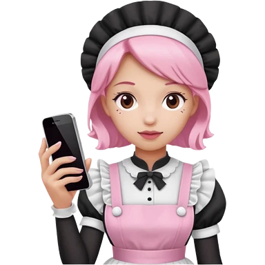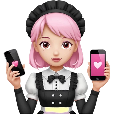 Man with a pink boy cat ears and a maid dress brown hair emoji
