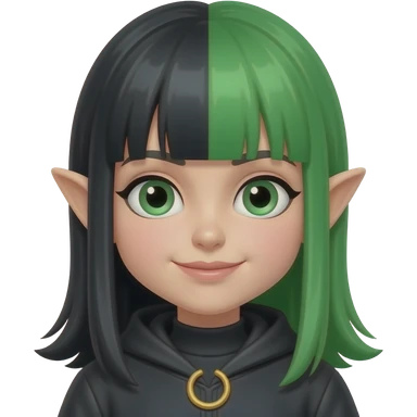 Mirabelle, a witch girl with black and green split straight long hair emoji