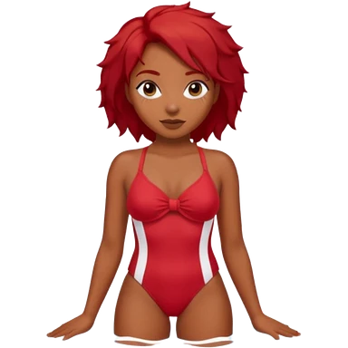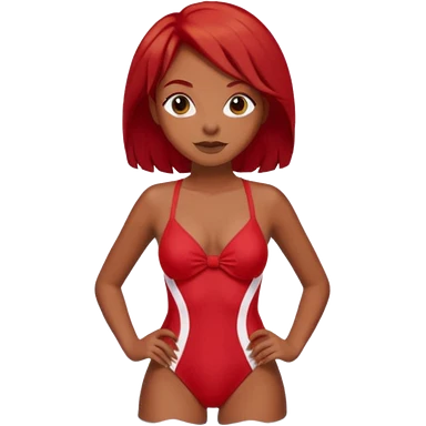 black woman in bathing suits with red hair emoji