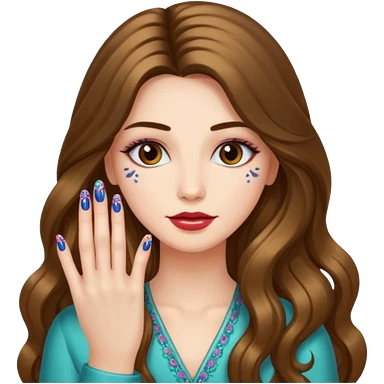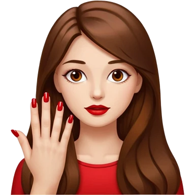 Girl nail artist with dark brow hair and hazel eyes and black gloves emoji