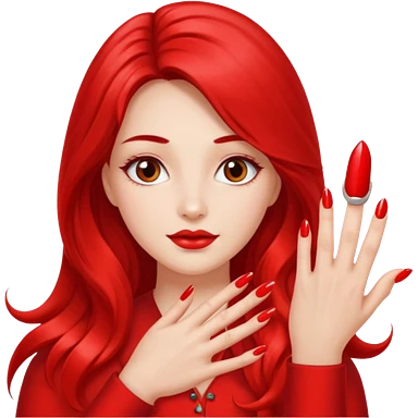 woman hand pointing index finger, red nail varnish. back of the hand visible emoji