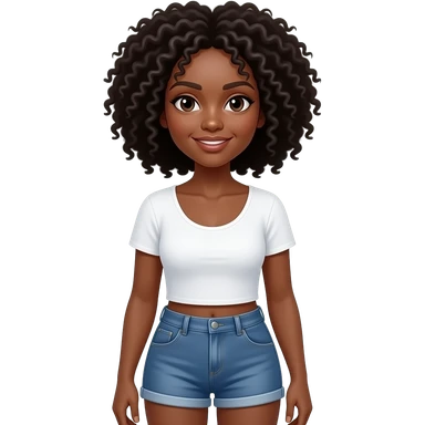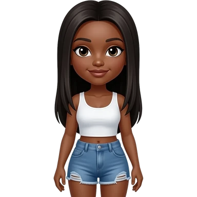 Black woman wearing jeans shorts ans white top straight hair larger breasts emoji | AI Emoji Generator