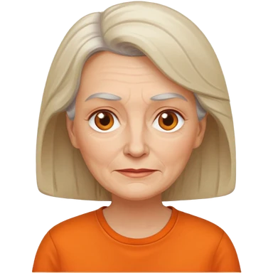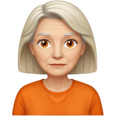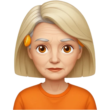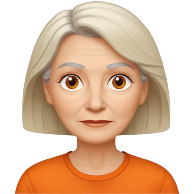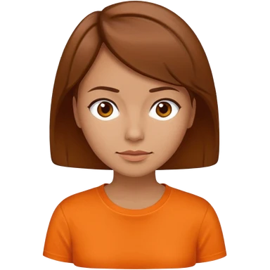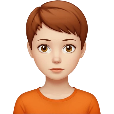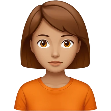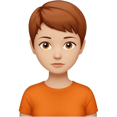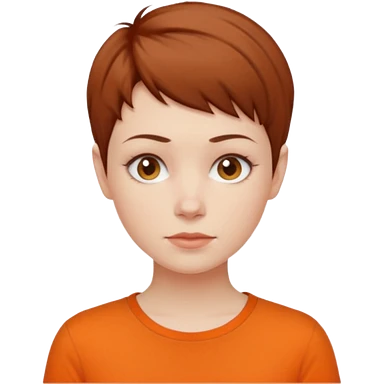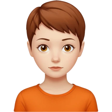 brown haired woman no smile with orange shirt short hair pixie emoji