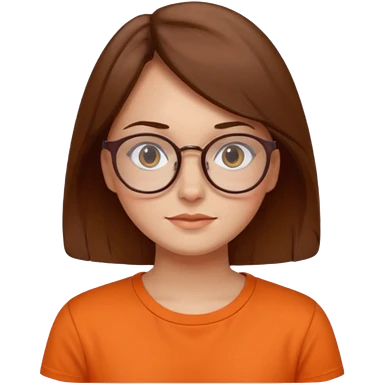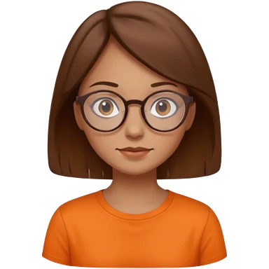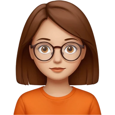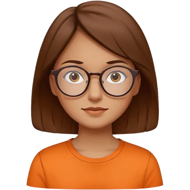 black hair, medium hair, smile with one’s eyes, woman, orange glasses emoji