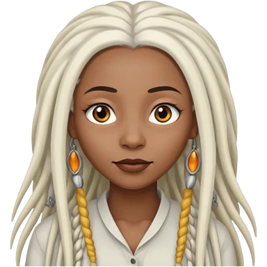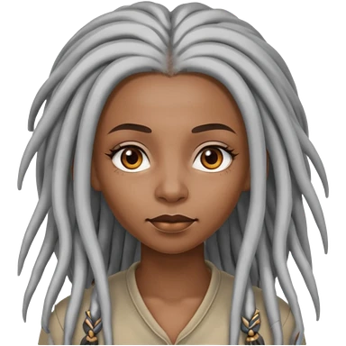 black woman with grey eyes with long silver dreadlocs emoji | AI Emoji Generator