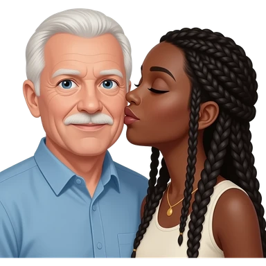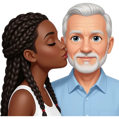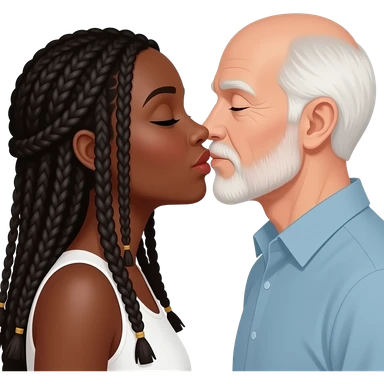 Black woman with long braids kissing older white bald man no beard or mustache emoji | AI Emoji Generator