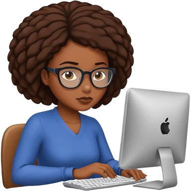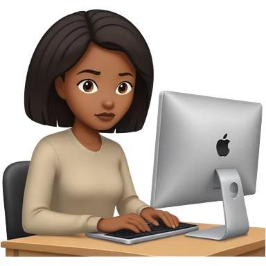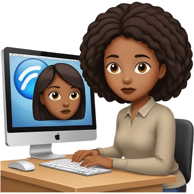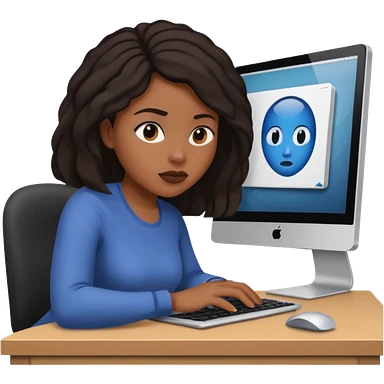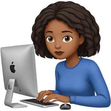 black woman working on a computer, hiding behing her computer, no brand on the computer, focused on the screen emoji