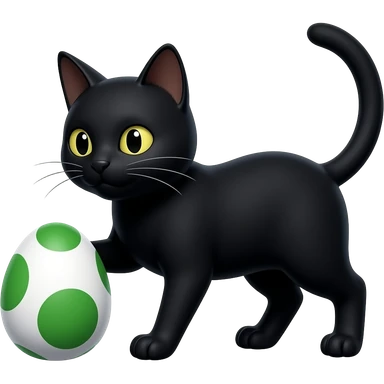 solid black cat playing with a yoshi egg from the super mario franchise emoji