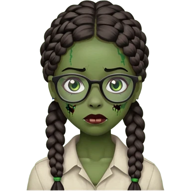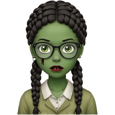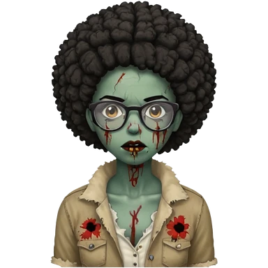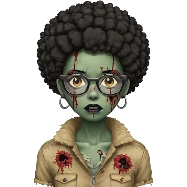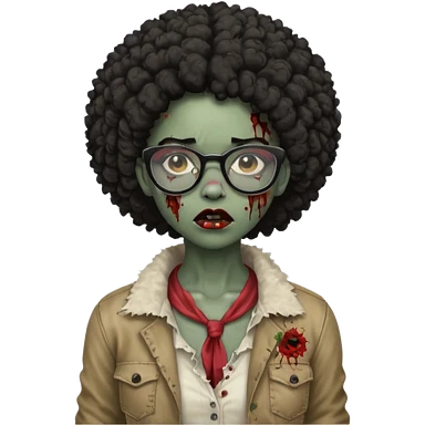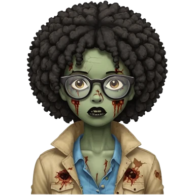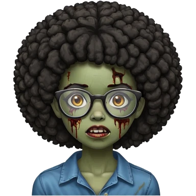 black zombie girl with glasses and afro hair emoji | AI Emoji Generator