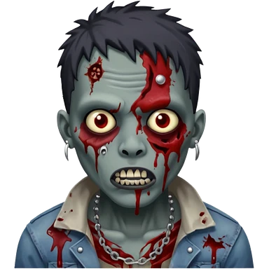 zombie boy with black anime wolfcut medium long symmetrical hair and piercings emoji