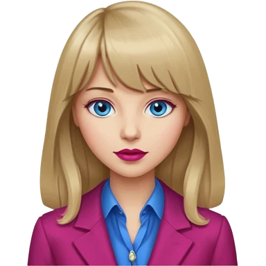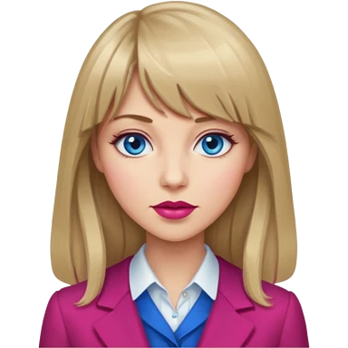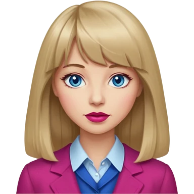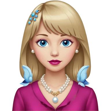 Woman with long dark blond hair and bang, blue eyes, raspberry lip, with classy clothe emoji emoji
