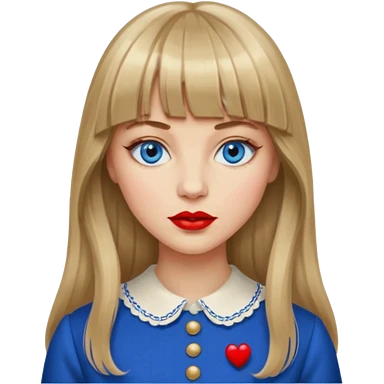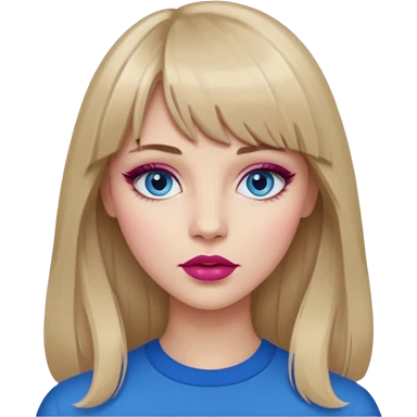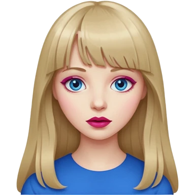 Woman with long dark blond hair and bang, blue eyes, raspberry lip emoji emoji