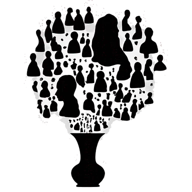 A sleek, symmetrical vase in the center of the image, created by the negative space between two black silhouettes of human profiles facing each other on either side. emoji