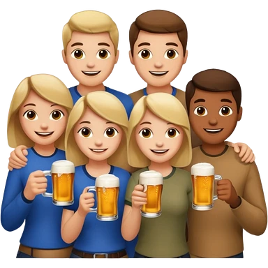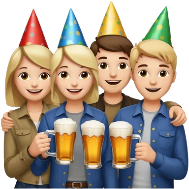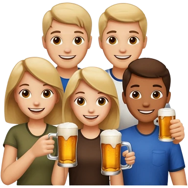 four people. Asian girl, black guy with glasses and dyed blonde hair, indian guy with glasses, asian guy emoji