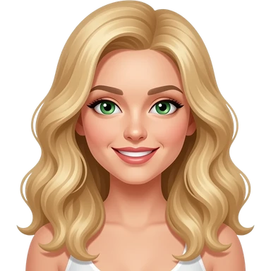 Long beach blonde wavy hair White skin green eyes blonde hair woman sexy smiling emoji