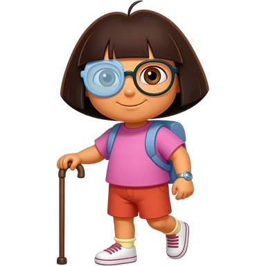 Blind dora who needs glasses to see and is unable to walk and needs a stick to walk emoji